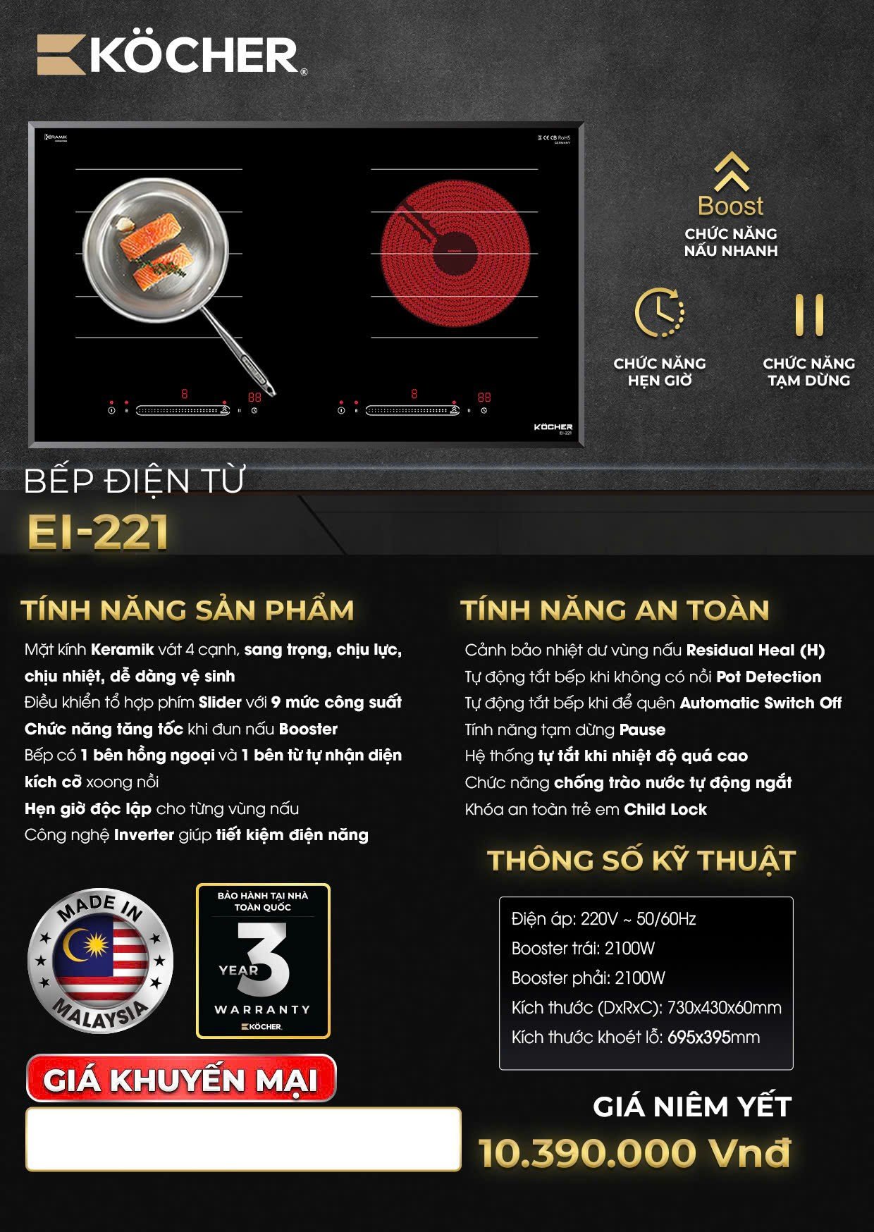 + Hẹn giờ độc lập cho từng vùng nấu.