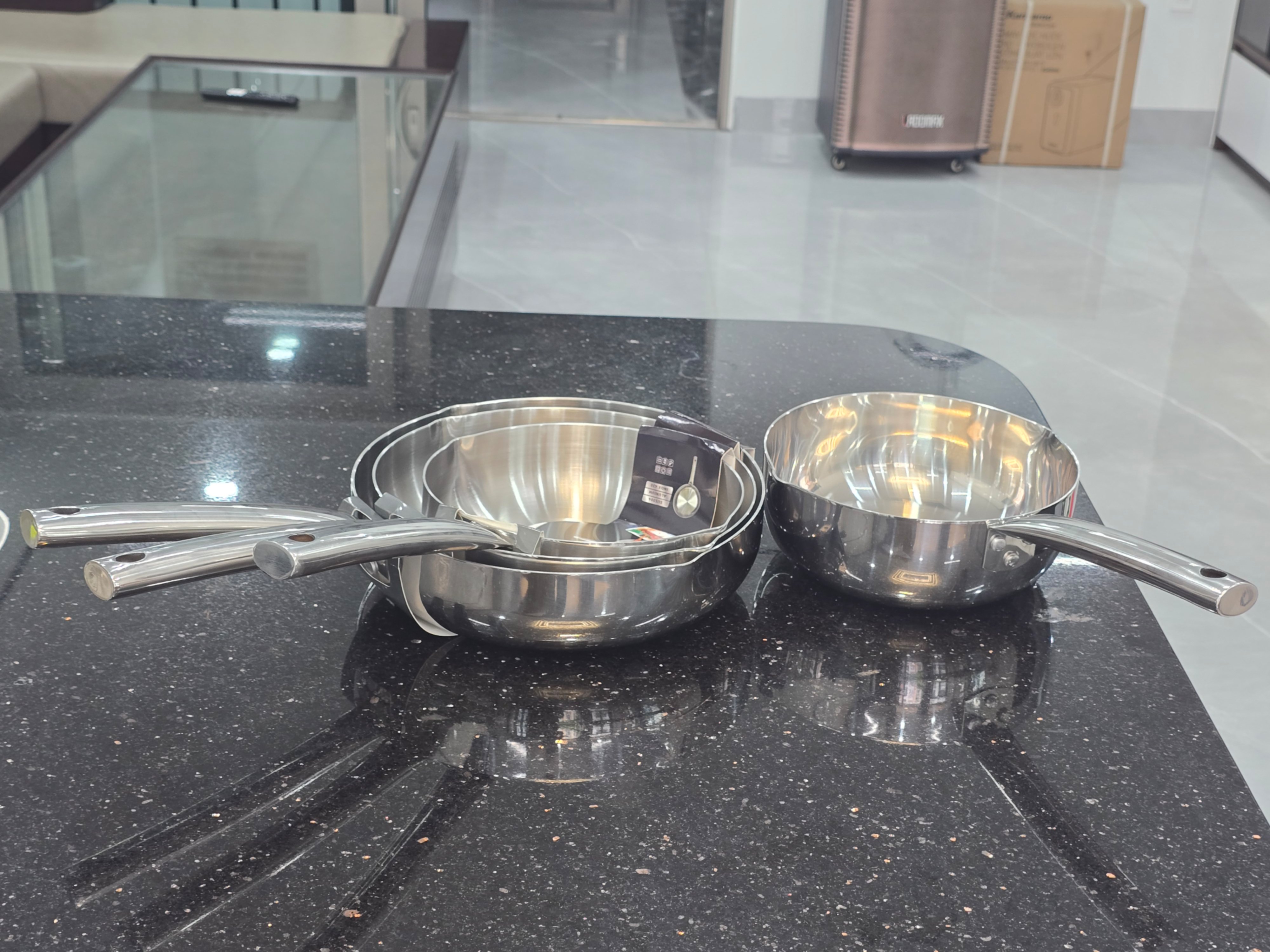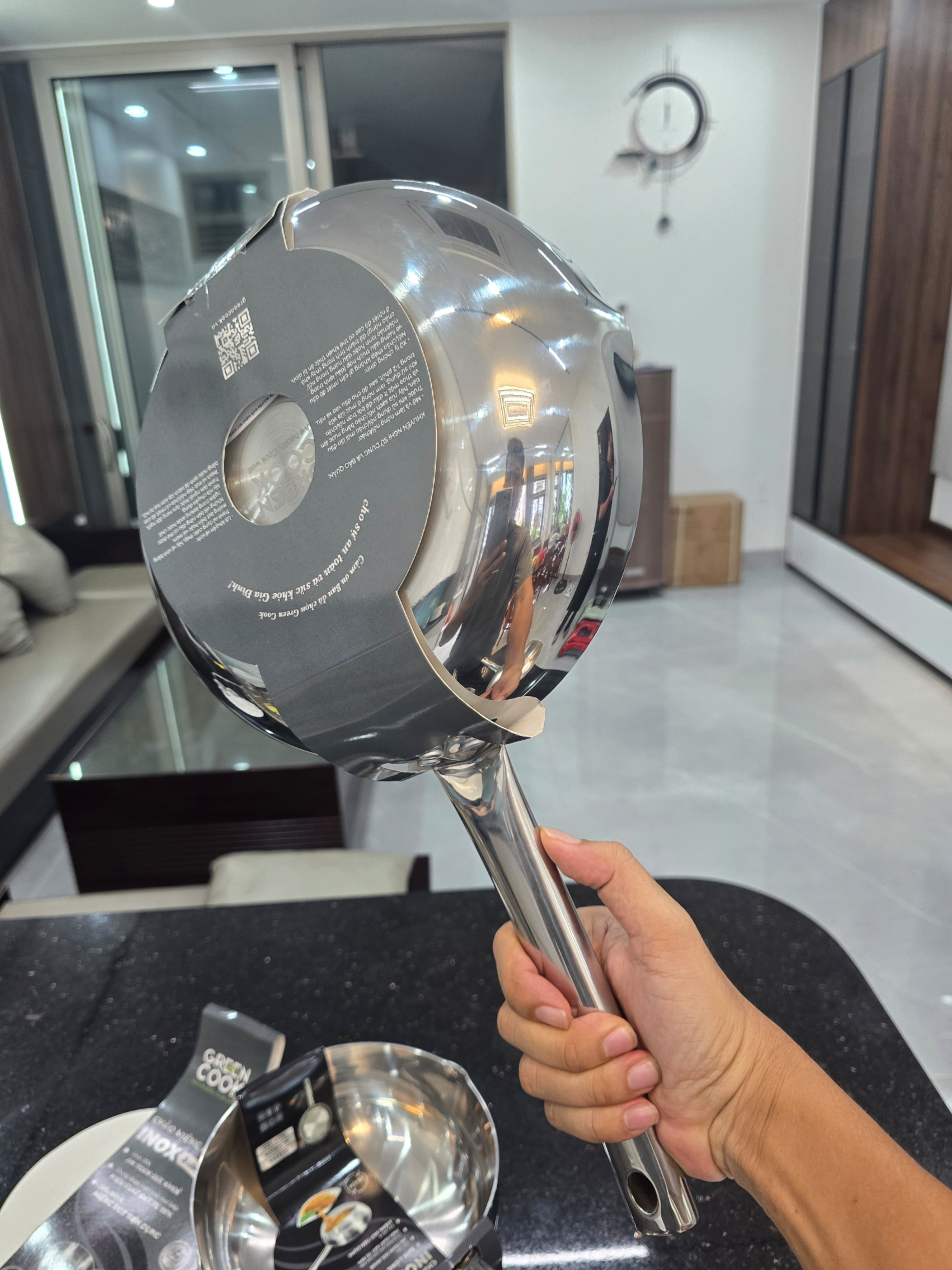 - Thiết kế chảo: inox 3 lớp đúc nguyên khối, không phải dập ép