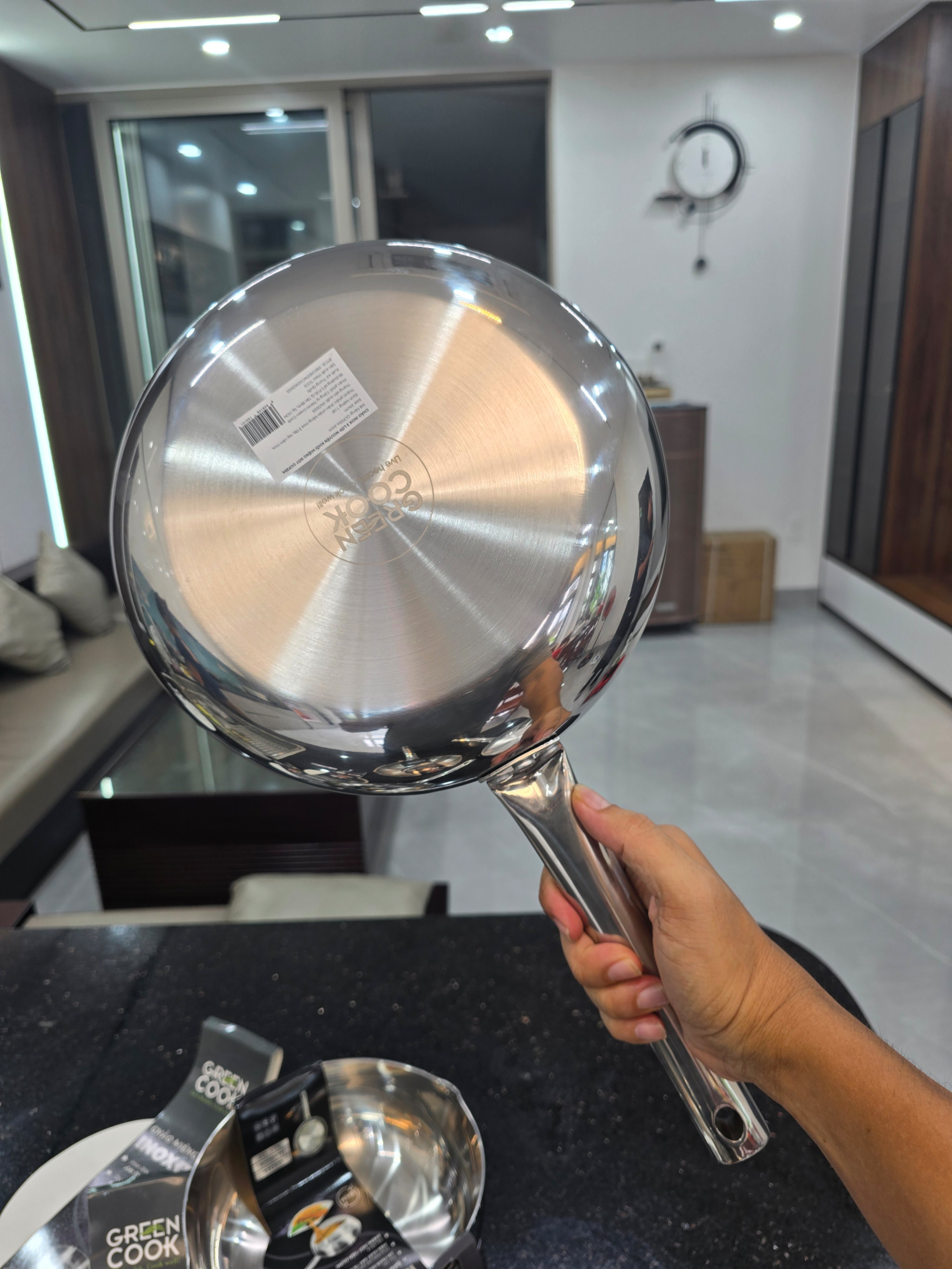 - Loại chảo: Chảo inox 3 lớp nguyên khối