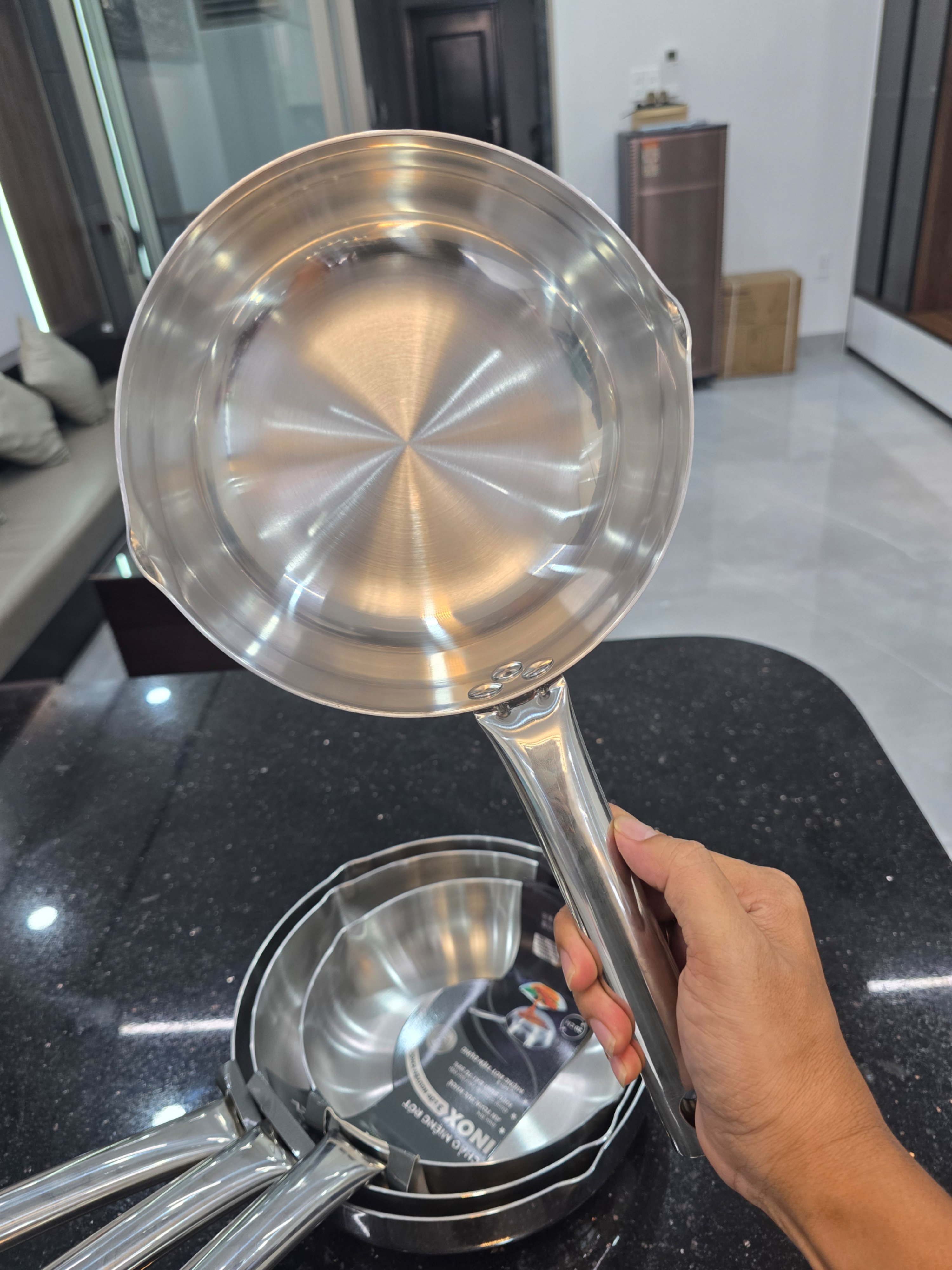 - Thiết kế chảo: inox 3 lớp đúc nguyên khối, không phải dập ép