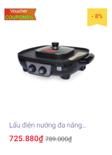 Sản phẩm được áp dụng Voucher sẽ có biểu tượng ở góc trên bên trái. Chữ màu vàng là mã Voucher