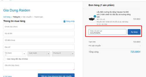 - Voucher giảm giá trên web raiden.vn có thể tìm thấy bằng cách sau: